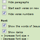 The King James Online Bible has been updated with some cool features. It now looks much better on a mobile device (should have updated that a decade ago). Cookies are no longer used to store the settings. The settings are in the URL. This means that a link can be sent to someone and they will be looking at what you're looking at. The font size can be increased for the half-blind folk. And the font can be decreased if you're looking for more text on one page. The cross-references can be hidden for reading the Bible with less distractions. Speaking of distractions, the verse numbers can also be turned off. Enjoy!